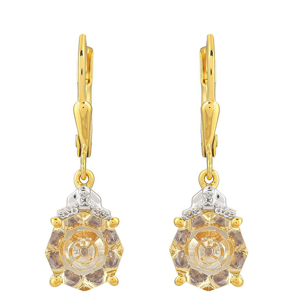 Cercei din Argint 925 Placat cu Aur ( 2.11 grame ) cu Tanzanit și Cuarț de culoarea Șampaniei 3.07 Carate