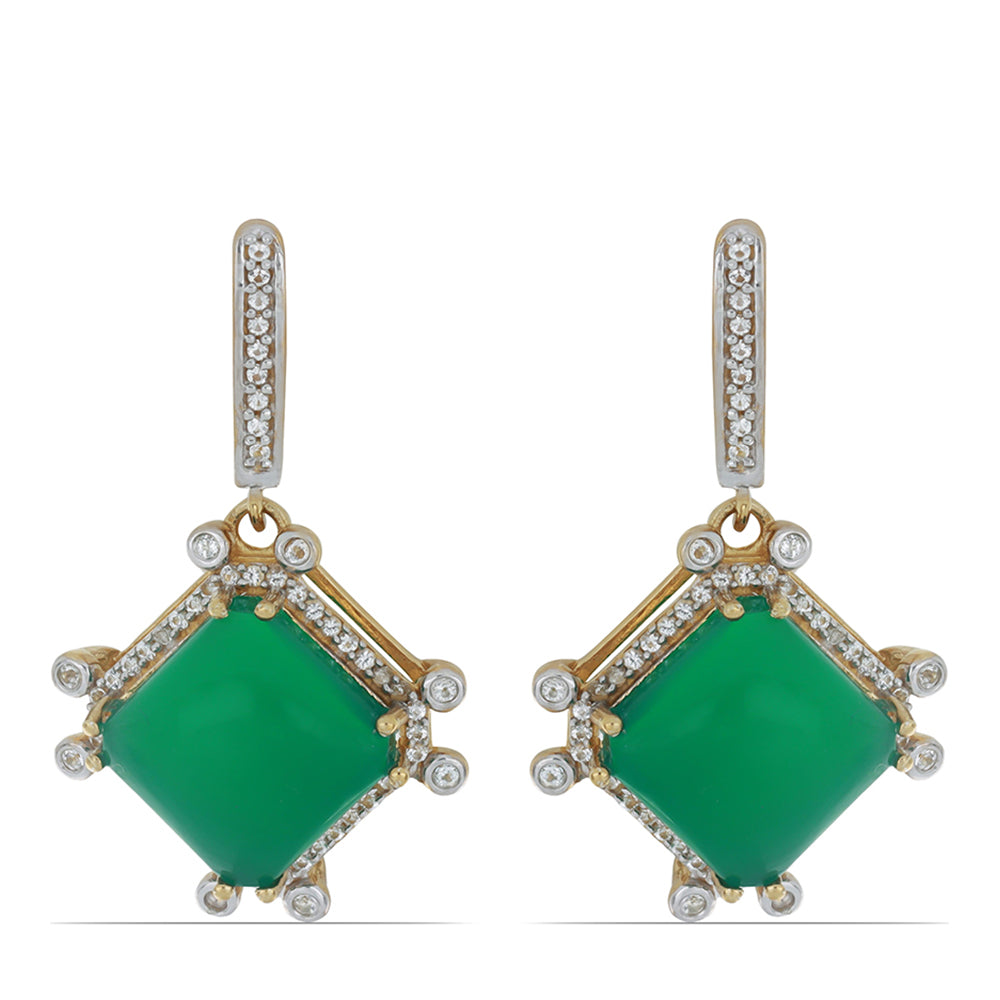 Cercei din Argint 925 Placat cu Aur ( 7.5 grame ) cu Agat Verde și Topaz Alb 16.93 Carate
