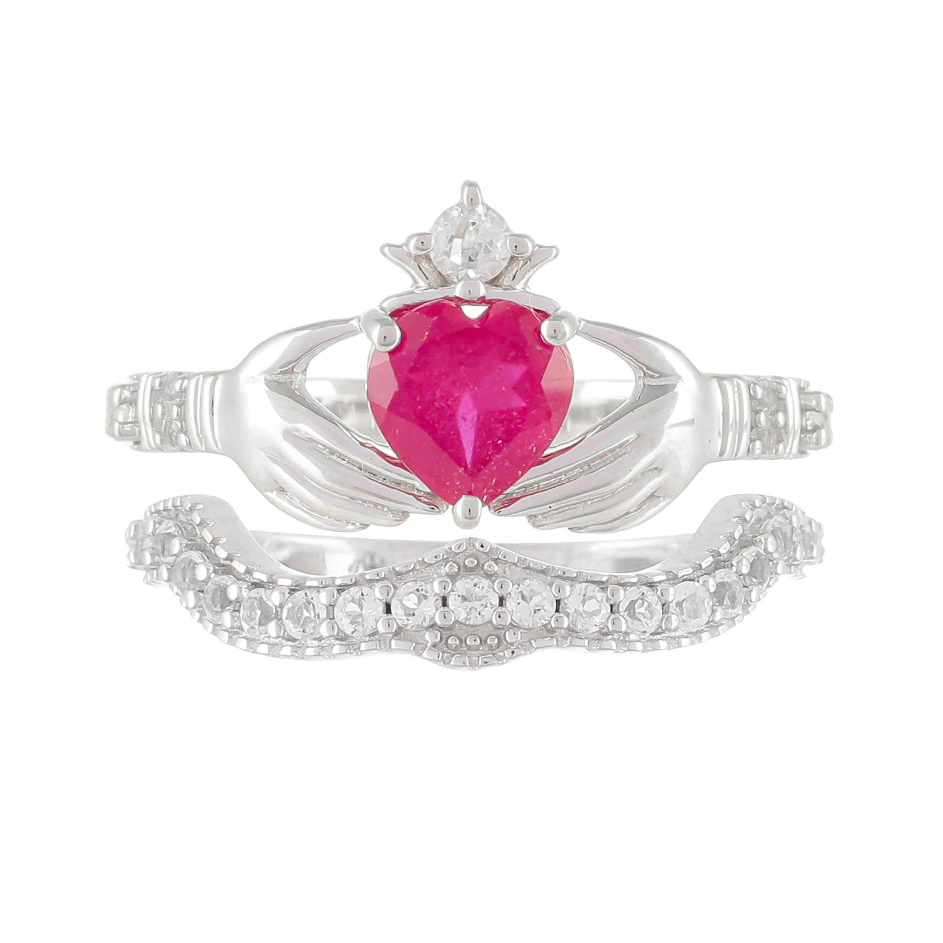 Inel din Argint 925 ( 5.33 grame ) cu Rubin Thailandez și Topaz Alb 1.67 Carate