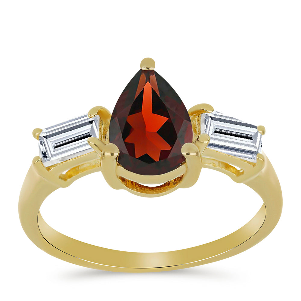 Inel din Argint 925 Placat cu Aur ( 1.88 grame ) cu Granat Barton și Topaz Alb 2.24 Carate
