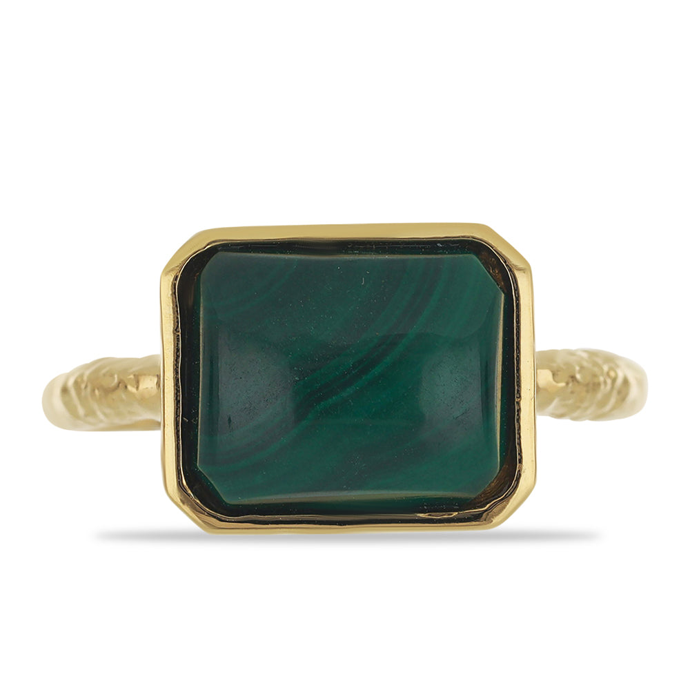 Inel din Argint 925 Placat cu Aur ( 2.78 grame ) cu Malachit 6.44 Carate kod: Y52557 Mărimea bijuteriei: 11 mm x 22.80 mm