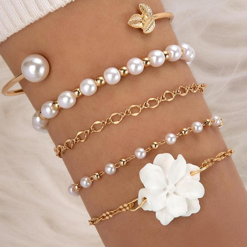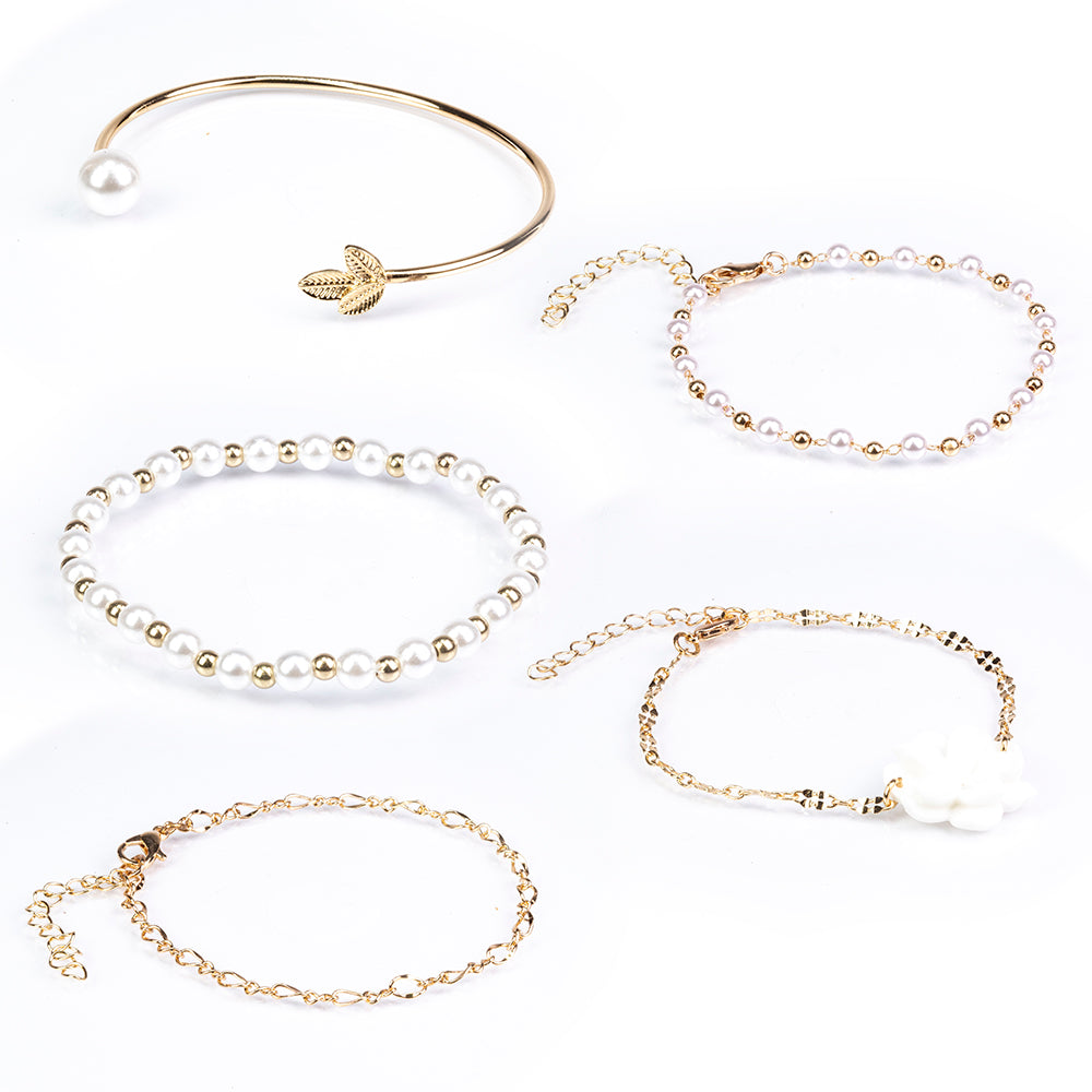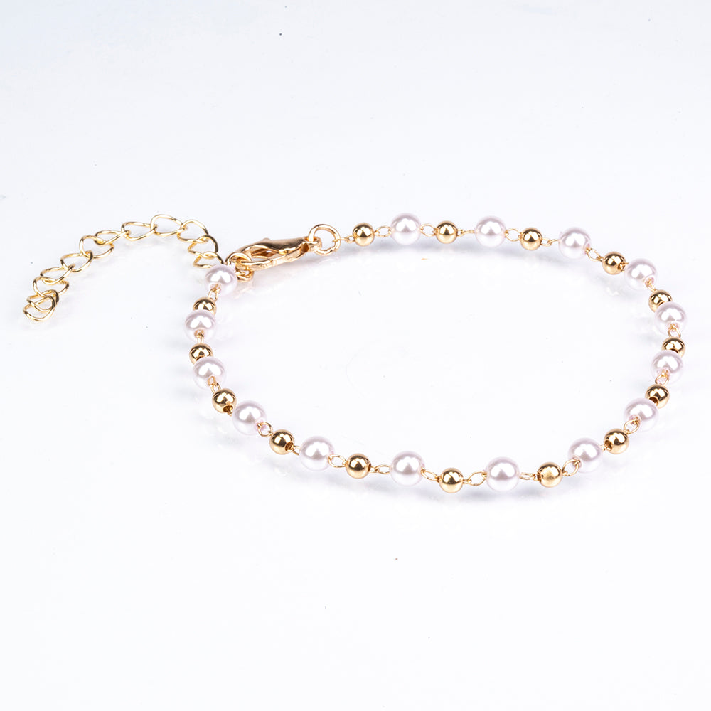 Set din Aliaj Placat cu Aur cu Perlă de cristal și Cristal Alb Emporia® ( Brățară )